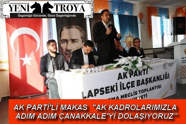 AK Parti Lapseki ilçe Başkanlığı Danışma Meclis Toplantısı’na da katılan Başkan Makas, Cumhurbaşkanı ve AK Parti Genel Başkanı Recep Tayyip Erdoğan tarafından açıklanan Türkiye Yüzyılı vizyonuna dikkat çekti. Basına kapalı olarak gerçekleşen toplantıya ilişkin bilgi veren Başkan Makas; “AK Parti ailesinin mensupları olarak Türkiye’mizin çeyrek asrına damga vurmuş kadrolarımızla ve dünya liderimiz Recep Tayyip Erdoğan ile gurur duyuyoruz. AK kadrolarımızla adım adım Çanakkale’yi dolaşıyor, tüm gücümüzle çalışmaya devam ediyoruz. Çalışma programlarımız içerisinde il ve ilçe teşkilatlarımızla, danışma ve istişare toplantılarımızı da gerçekleştiriyor, notlarımızı alıp, AK ailemize kazandırdığımız yeni üyelerimizin rozet takma törenlerini gerçekleştiriyoruz” diye konuştu.