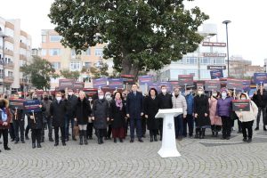 İskele meydanında AK Parti İl Başkanlığı tarafından düzenlenen ve tüm Türkiye’de eş zamanlı olarak saat; 12.00’de gerçekleştirilen basın açıklamasına AK Parti Çanakkale Milletvekili Jülide İskenderoğlu, AK Parti İl Başkanı Naim Makas, AK Parti Merkez İlçe Başkanı Aynur Tuna Yavaş, İl Genel Meclisi Başkanı Nejat Önder, İl Gençlik Kolları Başkanı Alperen Uysal, Çanakkale Belediye Meclisi AK Parti Grup Başkanvekili Esra Yüksel ve partililer katıldı.