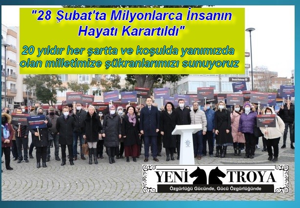 AK Parti Çanakkale İl Başkanlığı tarafından, 28 Şubat’ın yıldönümünde bir basın açıklaması yapıldı. İl Başkanı Naim Makas tarafından okunan basın açıklamasında, “20 yıldır her şartta ve koşulda özellikle darbeler karşısında yanımızda olan milletimize şükranlarımızı sunuyoruz” denildi.