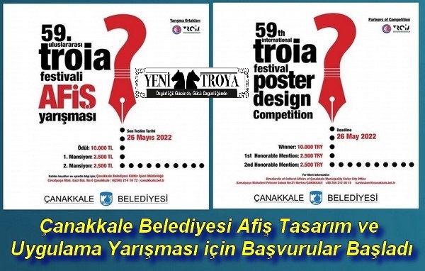 Ulusal ve Uluslararası alanda 18 yaş üzeri tüm katılımcılara açık olan yarışmaya son başvuru tarihi 26 Mayıs 2022 Perşembe olarak belirlendi. Yarışmada 1. seçilen tasarım 10.000 TL, 1. ve 2. Mansiyon için seçilen tasarımlar 2.500 TL para ödülü alacakken; sergilenmeye değer görülen afişler ise 59. Uluslararası Troia Festivali kapsamında 9 – 13 Ağustos 2022 tarihleri arasında sergilenecek. Ödül töreni ise 10 Ağustos 2022 tarihinde düzenlenecek festival resmi açılış töreninde gerçekleşecek.