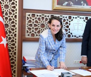 Çanakkale Barosu 36. Olağan Genel Kurulunda Baro Başkanlığına seçilen Av. Hande Keskin beraberinde Yönetim Kurulu üyeleri ile birlikte mazbatalarını Çanakkale Adalet Komisyonu Başkanı Eray Doğan’dan alarak göreve başladı.