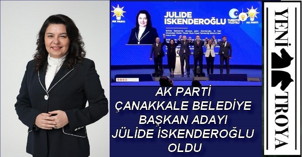 AK Parti Çanakkale belediye başkan adayı, AK Parti Merkez Karar ve Yönetim Kurulu (MKYK) üyesi ve Çanakkale eski Milletvekili Jülide İskenderoğlu oldu. Çanakkale’ye yapılan yatırımların öncüsü İskenderoğlu, “Şehrimize hizmet etmek için yeni bir kapı açıldı. Bu vesileyle Çanakkale AK Parti belediyeciliği ve hizmetle tanışacak” dedi.