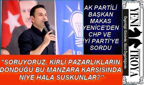 AK Parti Çanakkale İl Başkanı Naim Makas, CHP ile İYİ Parti arasında tartışmaya neden olan ‘HDP’ye bakanlık verilebilir’ sözlerinin ardından 6’lı masada krize yol açan CHP-İYİ Parti arasındaki ihale ifşalarına atıfta bulunarak, CHP’li ve İYİ Parti’li İl Başkanları Metin Ümit Ural ve Selahattin Yıldızlar’a bazı sorular yöneltti. Başkan Makas; “Kirli pazarlıkların döndüğü bu manzarayı Çanakkaleli seçmene nasıl anlatacaksınız? Bu manzara karşısında niye hala suskunsunuz?” dedi.
