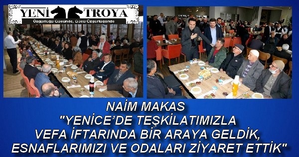 AK Parti Çanakkale İl Başkanı Naim Makas, İl Yöneticileri ile birlikte Yenice’de geçmişten bu güne kadar görev almış teşkilata vefa iftarında bir araya geldi. Başkan Makas ve beraberindeki yöneticiler, esnaf ve oda ziyaretleri de gerçekleştirdi.