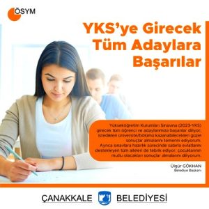 Çanakkale Belediye Başkanı Ülgür Gökhan, hafta sonunda gerçekleşecek olan Yükseköğretim Kurumları Sınavına (YKS) sınavları nedeniyle bir mesaj yayınlayarak sınava girecek olan öğrencilere başarılar diledi.