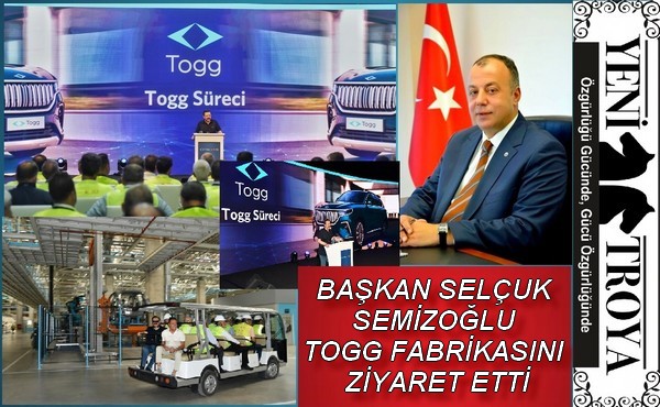2022 yılının sonuna doğru seri üretime geçmesi ve 2023 yılının ilk çeyreği bitmeden de trafiğe çıkması beklenen Türkiye’nin ilk elektrikli yerli otomobili TOGG’un Gemlik’teki fabrikasına yapılan ziyaretle ilgili bilgi veren Yönetim Kurulu Başkanı Selçuk Semizoğlu; “Açılışı 29 Ekim 2022 tarihinde yapılması planlanan TOGG fabrikasını bugün TOBB Başkanımız Sayın Rifat Hisarcıklıoğlu önderliğinde Oda ve Borsa başkanlarımızın katılımlarıyla ziyaret ettik. Cumhuriyet’imizin 100’üncü kuruluşu olan 2023 yılında seri üretimine başlanacak olan ilk elektrikli aracımız hepimizi heyecanlandırıyor. Avrupa’nın ilk, doğuştan elektrikli SUV aracı olacak TOGG’un Türkiye’de trafiğe çıkmasından 18 ay sonra da Avrupa’da satışa sunulması bekleniyor. Ülkemiz için gurur kaynağı olacak TOGG’un üretim süreçlerinde emeği geçen herkese saygılarımı sunuyorum.” dedi.