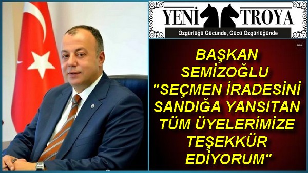 Çanakkale Ticaret ve Sanayi Odası Yönetim Kurulu Başkanı Selçuk Semizoğlu, gerçekleşen seçimlerin ardından yaptığı açıklamada ” Seçmen iradesini sandığa yansıtan tüm üyelerimize teşekkür ediyorum” dedi.