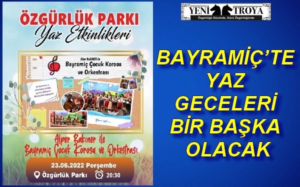 Bayramiç Belediyesi, geçtiğimiz yıl yenilediği Özgürlük Parkı’nda yaz gecesi etkinlikleri düzenlemeye başlıyor. İlk etkinliğini 24 Haziran Perşembe akşamı yapacak olan belediye, etkinlik sahnesinde Alper Bakiner ve Çocuk Korosu’nu ağırlayacak.