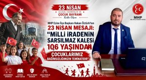 MHP Ezine İlçe Başkanı Hakan Öztürk’ten 23 Nisan Mesajı: “Milli İradenin Sarsılmaz Kalesi 106 Yaşında”, “Çocuklarımız Bağımsızlığımızın Teminatıdır”