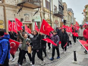 Vali İlhami Aktaş ve Eşi Songül Aktaş, Boğaz ve Garnizon Komutanı Tuğamiral Mustafa Biçen ve eşi Sibel Biçen, Çanakkale Belediye Başkanı Ülgür Gökhan, İl Emniyet Müdürü Selim Arıcı, İl Jandarma Komutanı J. Albay Sadi Akman, Sahil Güvenlik Çanakkale Grup Komutanı SG. Yb. Ercan Oran, şehit aileleri, gaziler, protokol üyeleri, öğrenciler ve vatandaşlar ellerinde Türk Bayraklarıyla Çanakkale Valiliği önüne kadar halk yürüyüşü gerçekleştirdi.
