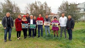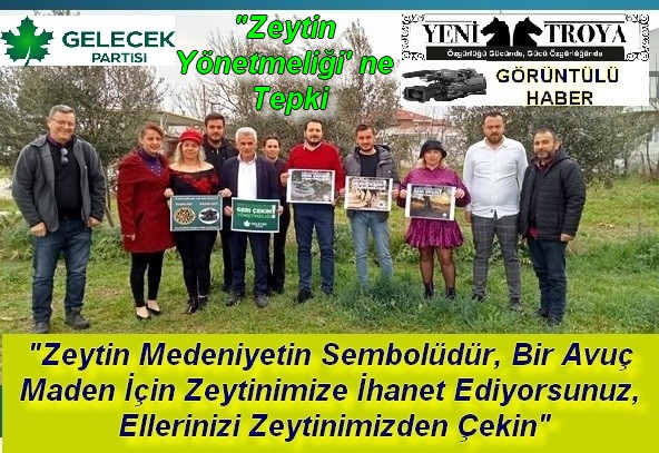 İl yöneticileri yönetmeliğin geri çekilmesi ile ilgili pankartları zeytin ağaçlarının önünde açıp düzenlemenin geri çekilmesi çağrısında bulundu