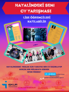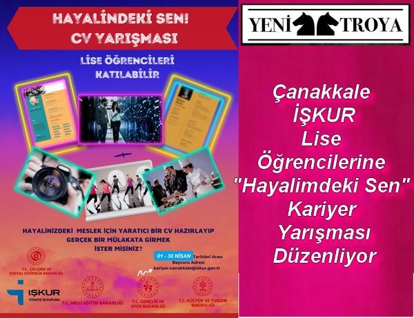 Çanakkale Çalışma ve İş Kurumu, Çanakkale’de öğrenim gören Lise öğrencilerinin kariyer planlamalarını yapmaları, gelecekte iş hayatına adım atarken etkili özgün özgeçmiş hazırlayabilmeleri için “Hayalimdeki Sen” adlı özgeçmiş yarışması düzenlitor.