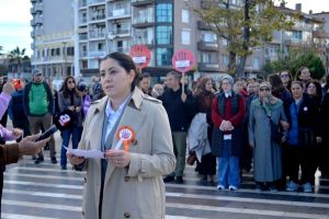 Truva Atı önünde konuşma yapan İl Müdür Yardımcısı Ceren Baydemir, kadına yönelik şiddetin yalnızca bireysel bir sorun değil, tüm toplumsal yapıyı derinden sarsan bir insan hakları ihlali olduğuna dikkat çekti.