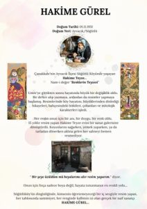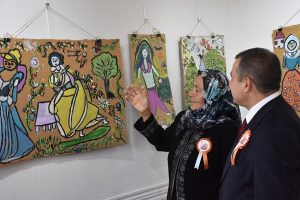 Programın devamında İl Kültür Müdürlüğü Sergi Salonu’nda Hakime Pala Gürel’in resim sergisi açıldı. Ayvacık’ın Söğütlü Köyü’nde yaşayan, hayvancılıkla geçinen ve eğitim imkânı bulamayan 73 yaşındaki Gürel, 15 yıldır çocukluk anılarını, köy yaşamını ve büyüklerinden dinlediği hikâyeleri resimlerine yansıtıyor. Evindeki 30 metrekarelik alana yüzlerce eser sığdıran Gürel, imkânsızlıklar içinde umut ve azmin sembolü hâline geldi.