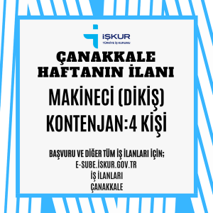 Bu kapsamda da bu hafta yayınlanan ilanda Çanakkale merkezde faaliyet gösteren bir firmada çalıştırılmak üzere “MAKİNECİ (DİKİŞ)” alınacağı duyuruldu.