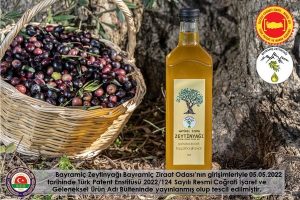 Bayramiç Zeytinyağı, Bayramiç Ziraat Odası’nın girişimleri, Çanakkale Ticaret ve Sanayi Odası’nın destekleriyle 05 Mayıs 2022 tarihinde Türk Patent Enstitüsü’nün 2022/124 sayılı Resmi Coğrafi İşaret ve Geleneksel Ürün Adı Bülteninde yayınlanarak tescil edildi.