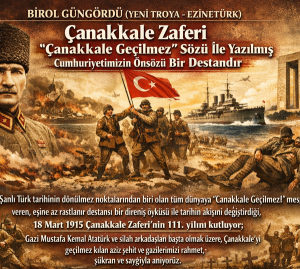 Tarihimize altın harflerle yazılmış olan Çanakkale Zaferi, Dünya tarihinde eşine az rastlanır bir kahramanlık destanıdır. Bu toprakların insanının bağımsızlık için...