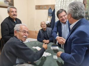 Baro ziyareti sonrası Çanakkale Şoförler ve Otomobilciler Esnaf Lokali’ne geçen CHP’li Erkek, burada hemşehrileri ve şoför esnafı ile buluşarak sohbet etti.