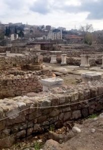 Bütün bunlar tapınak tarafında. Oysa ki kutsal alanın içinde bulunduğu kazı alanı çok daha geniş. Bu Apollon tapınakları hep suyun bol olduğu yerlere yapılırmış. Nitekim burası da öyle. Tapınağın hemen arkasında alttan ısıtmalı! iki hamam bulunuyor. Gezerken hamamın içinden su sesleri geliyordu. Bunlar tapınağa girmeden önce arınmak, temizlenmek amacıyla kullanılıyormuş.