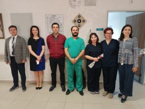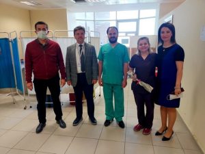 Op. Dr. Karacaer gün içerisinde ayrıca beraberinde Müdür Yardımcısı Aşkın Kurt ile birlikte Hastanenin Diyazliz Merkezini ziyaret ederek burada Diyazliz Merkezi Sorumlu Hekimi Dr. Mustafa Keser ile birlikte Diyaliz Merkezinde görev yapan hemşirelerle bir araya geldi. Pasta kesiminin yapıldığı ziyarette Op. Dr. Karacer onların gününü kutladı.