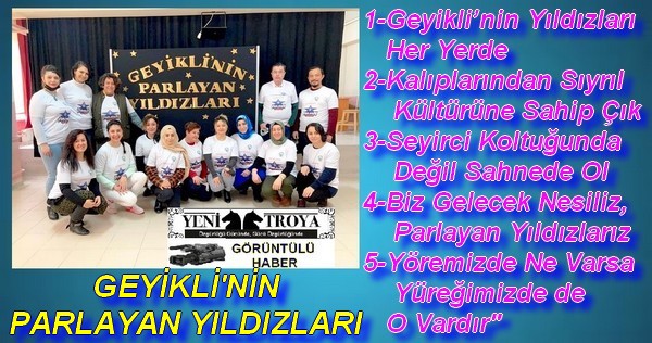 Geyikli İlkokulu tarafından, Geyikli İlkokulu Müdürü Derya Uçan, Müdür Yardımcısı Fadik Arslan ve Kordinatör Öğretmenleri Arzu Güler, Ali Şen ve Hatice Akbıyık Başkanlığında, Ezine Kaymakamlığı, Geyikli Belediyesi ve Ezine İlçe Milli Eğitim Müdürlüğü’nün destekleriyle, Geyikli İlkokulu öğrencilerine tarihi ve kültürel öğeleri yakından uzağa ilkesi ile tanıtmak, kültürümüzün ortak değerlerini gelecek kuşaklara aktarmak amacıyla hazırlamış oldukları “GEYİKLİ’NİN PARLAYAN YILDIZLARI” projesi hayata geçiyor.