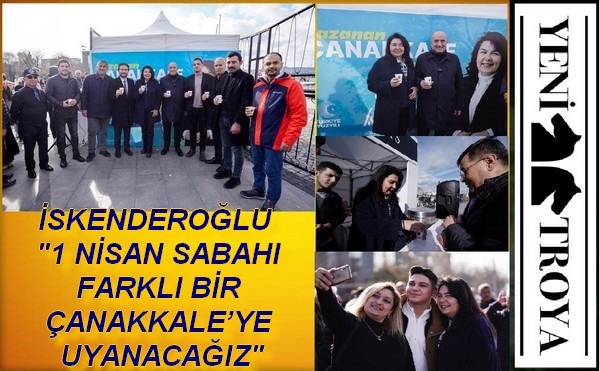 İskenderoğlu, şehrin öncelikli sorunlarının çözümü için yapılan çalışmaları da aktardı: “Özgürlük alanlarına saygı duyarak, hep birlikte yepyeni bir Çanakkale inşa etme hayalimiz var. Otopark, trafik ve ulaşım sorunlarını çözeceğiz. Bu zaten işimiz.. Geçen hafta Mustafa Ilıcalı ve ekibiyle Çanakkale trafiğini inceledik. Yakında çözüm önerilerini paylaşacak. İlk projemiz su fiyatlarını yüzde 50 düşürmek. Herkese dokunacak müjdelerimiz olacak. Desteklerinizi bekliyorum, 1 Nisan sabahı bambaşka bir Çanakkale’ye uyanacağız.”