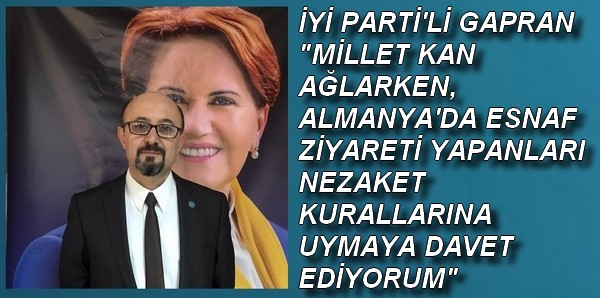 İYİ Parti Çanakkale Merkez İlçe Başkanı Necati Gapran, geçtiğimiz günlerde AK Parti Grup Başkanvekili Bülent Turan’ın Almanya ziyaretinde yaptığı esnaf buluşmalarına ve İyi Parti Genel Başkan Yardımcısı Rıdvan Uz’un bu konuda yaptığı eleştirilere Milletvekili Turan tarafından verilen cevaba yaptığı basın açıklaması ile cevap verdi.