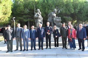 Şehitler Abidesi ziyareti ile başlayan ve Heyete Tarihi Alan Başkanı İsmail Kaşdemir’in eşlik ettiği ziyaret programı şehitliğe ve Meçhul Asker Anıtı’na karanfil bırakılmasıyla devam etti.