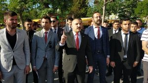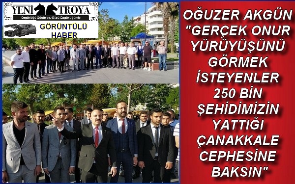Ulu Önderimizin bahsettiği irfan ahlak ve cumhuriyetin bekçisi olan gençlik bu yürüyüşe bu provokatörlüğe bu ahlaksızlığa bu yapılmak istenen kaosa dur diyecek. Ulu önderimizin 250 bin şehidimizin bize emanet ettiği bu vatan Çanakkale’mize biz Türk milliyetçileri olarak Çanakkale’liler olarak sahip çıkıyoruz ve bağıra bağıra söylüyoruz Çanakkale geçilmez.”