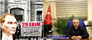 Dalyan Köyü Muhtarı Sadi Çalıkoğlu, 29 Ekim Cumhuriyet Bayramının 96. Yıldönümü dolayısıyla kutlama mesajı yayınladı. Çalıkoğlu mesajında şu ifadelere yer...