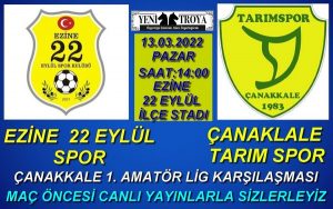 Kısa bir süre önce yeniden kuruluş işlemlerini tamamlayarak Çanakkale 1. Amatör ligde mücadele etmeye hak kazanan Ezine 22 Eylül Spor...