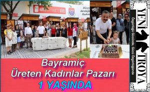 Birinci yılını dolduran Bayramiç Üreten Kadınlar Pazarı;Bayramiç Belediye Başkanı Mert Uygun, Başkan Yardımcısı Ahmet Karadeniz, İl Genel Meclis Üyesi Sadık...