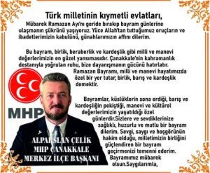 Milliyetçi Hareket Partisi Çanakkale Merkez İlçe Başkanı Alparslan Çelik, Ramazan Bayramı dolayısıyla bir kutlama mesajı yayınladı. Başkan Çelik mesajıda şunları...