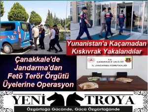 Çanakkale İl Jandarma Komutanlığı ekipleri Fetö Terör Örgütü Üyelerinin yakalanmasına yönelik başlattığı operasyonu sonucu Yunanistan'a kaçma hazırlığındaki 2 kişiyi yakaladı....