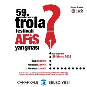 9-13 Ağustos 2022 tarihleri arasında 59. kez düzenlenecek Uluslararası Troia Festivali'nin duyurularında kullanılacak afişi belirleyecek Afiş Tasarım ve Uygulama Yarışması...