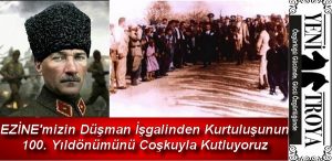 Ezine'mizin düşman işgalinde kurtuluşunun 100. yıldönümünde Kurtuluş Savaşı’nın önderi Gazi Mustafa Kemal Atatürk ve silah arkadaşlarını, kutsal vatan parçası uğruna...