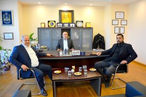 Tariş Zeytin ve Zeytinyağı Tarım Satış Kooperatifleri Birliği Yönetim Kurulu Üyesi Nihat Büyükerol, beraberinde Yasin Büyükerol ile birlikte,Borsa Başkanı Abdullah Deniz’i ziyaret ederek, hayırlı olsun temennilerinde bulundu.