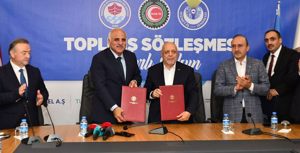 Trabzon Büyükşehir Belediyesi ve Hak-İş Konfederasyonuna bağlı Hizmet İş Sendikası arasında toplu iş sözleşmesi imza töreni yapıldı.