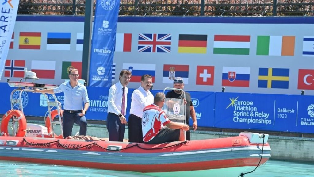Avrupa Triatlon Şampiyonası’na verdikleri desteklerinden dolayı Avrupa Triatlon Birliği Yönetim Kurulu Üyesi Herwig Grabner tarafından; Balıkesir Valisi Hasan Şıldak, Balıkesir Büyükşehir Belediye Başkanı Yücel Yılmaz ve Türkiye Triatlon Federasyon Başkanı Bayram Yalçınkaya’ya altın madalyalarını takdim etti.
