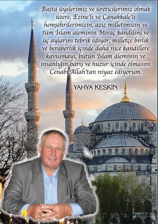 700 Sayılı Ezine Yağlı Tohumlar Tarım Satış Kooperatifi Başkanı Yahya Keskin, Miraç Kandili dolayısıyla bir mesaj yayınladı.